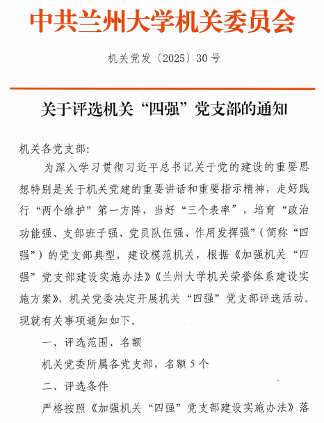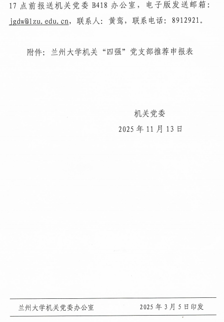 兰州大学机关“四强”党支部推荐申报表