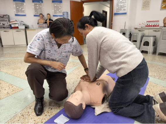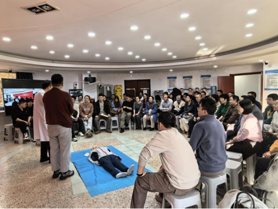 在“公众急救技能培训”的实践环节,全体党员学习了心肺复苏与海姆立克法的基本知识与操作要点,并分组进行了模拟演练,掌握了判断意识、胸外按压、人工呼吸及气道异物梗阻急救等关键技能。大家学习热情高涨,在动手实践中掌握了基本的急救技能,增强了应对突发状况的能力,体现了“人人学急救,急救为人人”的责任意识。