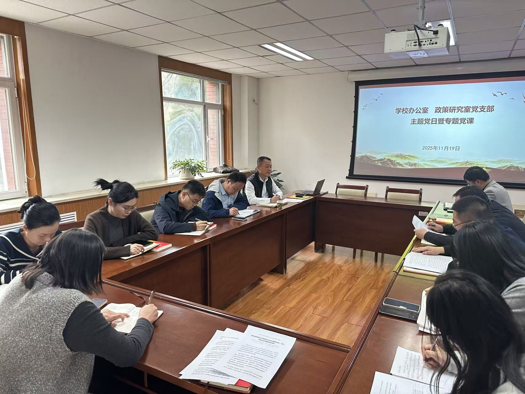 2025年11月19日下午,学校办公室、政策研究室党支部在科学馆205会议室举行“深化学习党的二十届四中全会精神 深入开展法治教育”主题党日活动暨专题党课。党支部书记李永春主持会议。