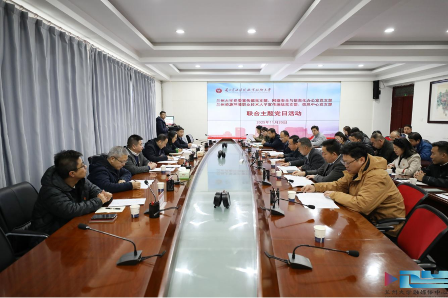 为深入学习贯彻党的二十届四中全会精神和学校第十一次党代会精神,扎实推进党建与业务深度融合,11月20日下午,兰州大学党委宣传部党支部、网络安全与信息化办公室党支部联合兰州资源环境职业技术大学宣传统战党支部、信息中心党支部,共同开展“赓续红色血脉 凝聚奋进力量”主题党日活动。活动由兰州资源环境职业技术大学党委常委、宣传部部长严昭飞主持。