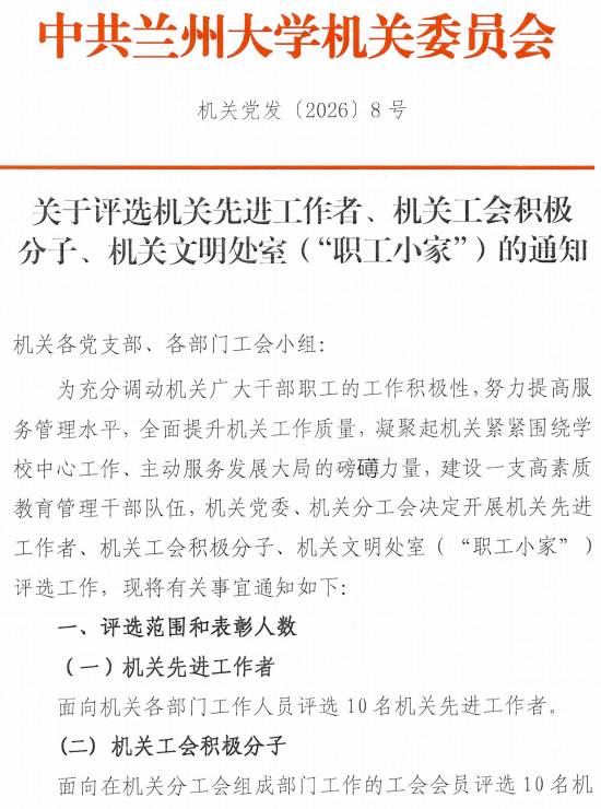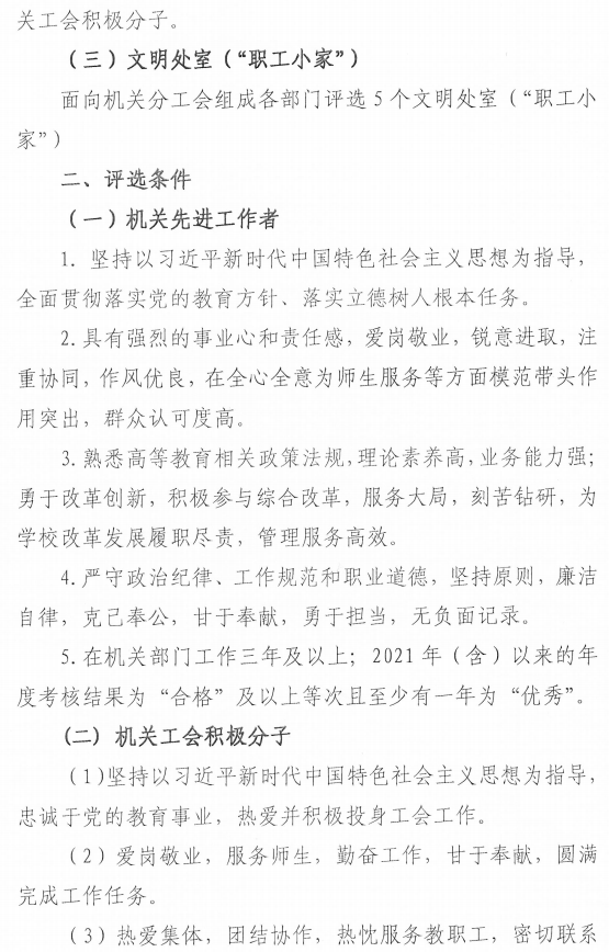 关于评选机关先进工作者、机关工会积极分子、机关文明处室(“职工小家”)的通知